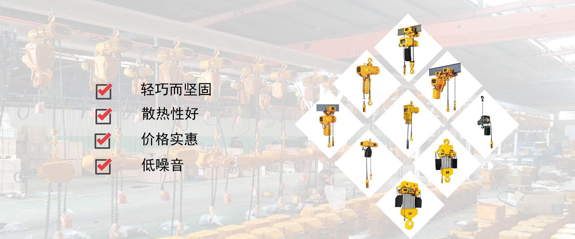 密歇爾起重機械(杭州)有限公司提供全面的起重輸送產(chǎn)品和服務(wù),產(chǎn)品覆蓋環(huán)鏈電動葫蘆(125Kg-80T),歐式鋼絲繩葫蘆,防爆葫蘆,懸臂吊,KBK柔性起重機,歐式起重機,起重馬達,端梁,起重移動供電系統(tǒng)等,在國內(nèi)外被廣泛的應(yīng)用于生產(chǎn)車間,汽車,模具,機械制造,鐵路,船舶,物流搬運,現(xiàn)代化工廠流水線等工業(yè)及其它特殊用途。